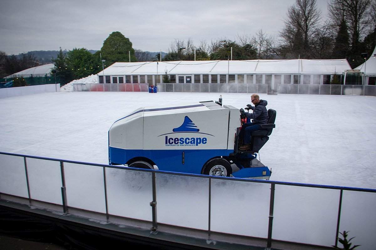 The average ice rink is 600m2 but there are smaller and larger sizes available. We can provide flexible solutions depending on your requirements. Some of our smallest rinks are 300m2 which would be 100 skaters per session. Our larger rinks are 1500m2 which can hold 500 skaters per session.